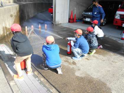 実際に,消火しました!是非,消火器の使い方をお子さんに聞いてみてください。