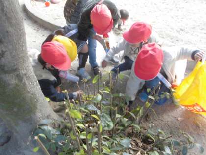 ドングリや落ち葉,枝などを一生懸命見つけていました。特に落ち葉の色がとてもきれいでつるつるで,「先生,見て見て。」と見せてくれました。