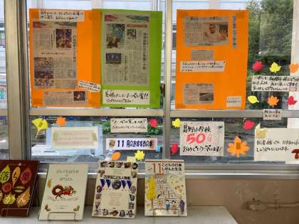 職員室の前には毎月,学校司書の先生がその月にあった本を紹介してくださったり,