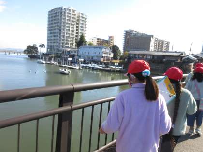 空気が冷たい冬空の中,琵琶湖疏水の学習のための社会見学に行きました。
