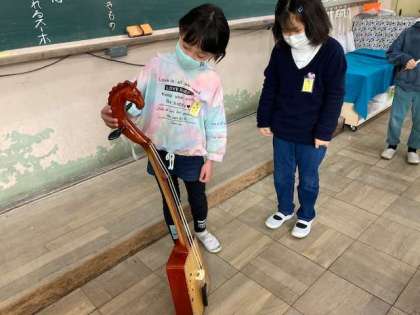 お話を聞いた2年生のみなさんは,「私が一番心に残ったところは,スーホと白馬の出会いの場面です。理由は・・・」と,それぞれが強く心に残った場面とその理由を友だちに伝えることができていました。また,本物の馬頭琴にも触れることで,より深くお話への理解を深めたり,関心を高めたりすることができました。