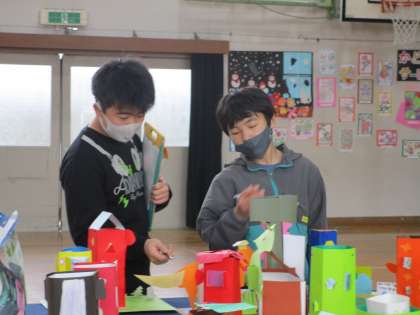 体育館に入ると,工夫・アイディアあふれる作品でいっぱいです。