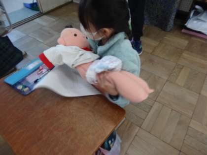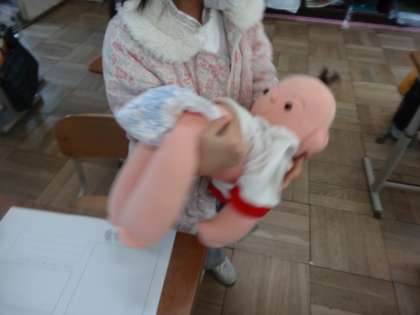 性教育の学習で,〜わたしがうまれたとき〜いのちについて考えました。赤ちゃんの人形を抱いてみたり,受精卵の大きさを確認したりして命について考えました。