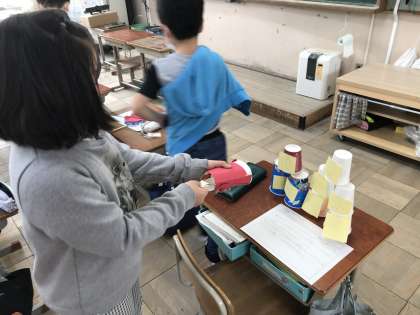 ゴムの力を使ったパチンコで、的当てゲームを作ったり・・・