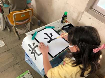 とても集中して,3年生で学習した内容を振り返りながら,「光」を書きました。