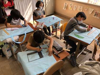 自分の好きな物を書いていたり,学級目標を書いていたり,それぞれ思いのこもった作品バックとなりました。