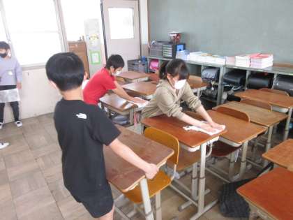 自分たちが使う教室を丁寧に頑張って掃除をしていました。