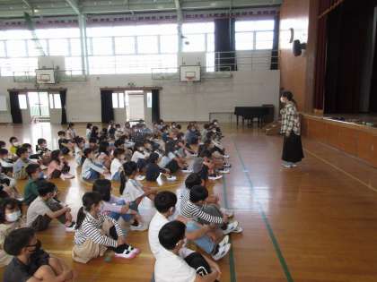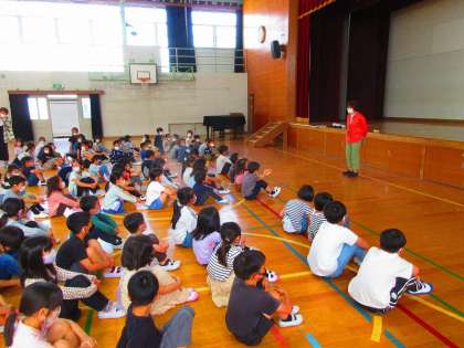 3時間目に学年集会をしました。1年生からの成長や2年生で学ぶこと,そして学年目標「葛󠄀野戦隊2レンジャー‘HERO’」を発表しました。