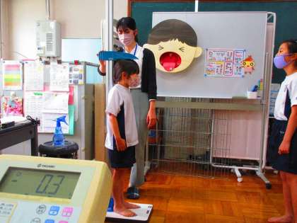 新年度の身体計測をしました。静かに並んで計測する姿に養護の先生から「お兄さん,お姉さんになったね。」と褒めてもらいました。