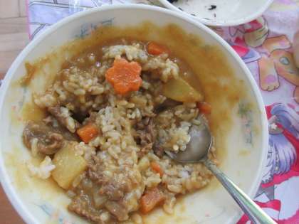 カレーを食べていると,何とハッピーキャロット☆嬉しいですね。見ずに食べてしまった人もいたりして・・・