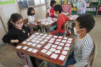 地図記号がかいてあるカードを使って,ゲームをしながら楽しく覚えています。