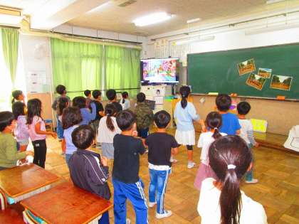 今日,1回目の練習をしました。たくさん各教室で踊ってから運動場で練習しました。明日は,代表で話してくれる人とダンスを通して練習をします。
