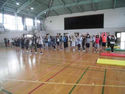 来週の17日(火)にある,1年生を迎える会に向けて,体育館で練習しました。