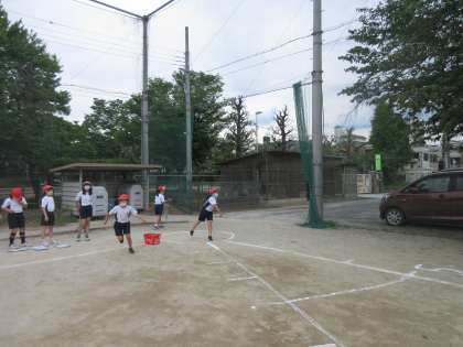 今度こそ,運動場で体力テスト「ソフトボール投げ」ができました。