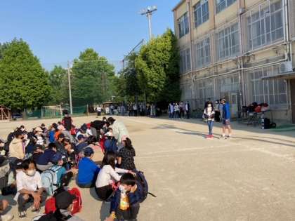 出発式に向けて司会の子どもたちが最終の打ち合わせをしています。