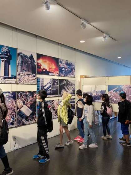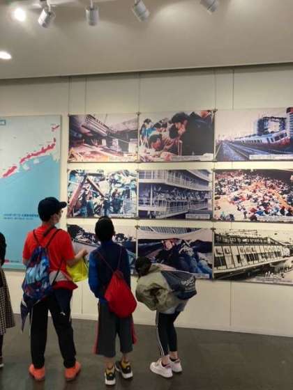 館内見学です。当時のパネルを見て、被害の大きさを知ることができます。同時に多くの方が助け合ったこともパネルから知ることができました。