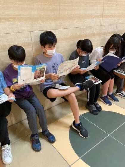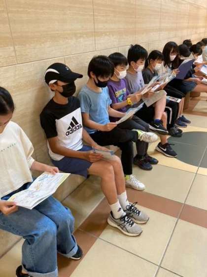 活動に疲れたのか子どもたちがセンターホールで休んでいました…よく見ると、全員空気椅子でした。