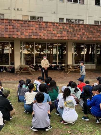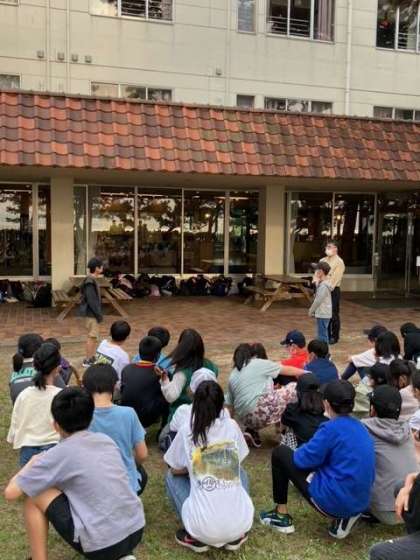 入館式ではホテル方を前に代表の児童が挨拶をしました。感謝の気持ちを持って過ごしましょう。ホテルのスタッフの皆様、お世話になります。よろしくお願いします。