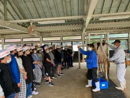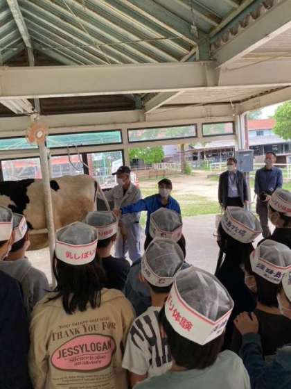 説明を受けて体験を行います。牛の息づかいや動き、温かさ。実際に触れる中で色々なことを感じてください。