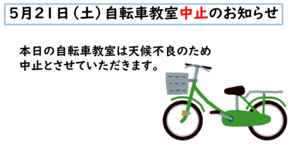 本日の自転車教室は天候不良のため中止とさせていただきます。