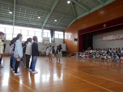 1年生をむかえる会では,実行委員会の6名を中心に練習を進め,本番をむかえました。葛野小学校に関する〇×クイズを考え,1年生に楽しんでもらうことができました。5年生として最初の大きな行事でした。メリハリを付け,立派な姿を見せてくれ,とても頼もしいなと感じました。