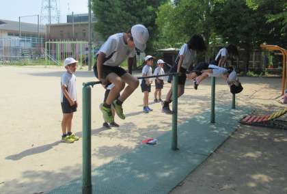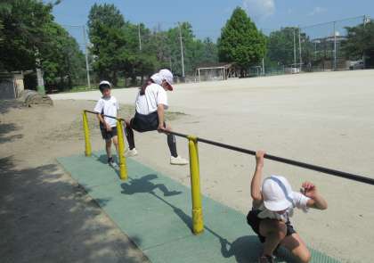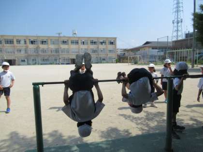 子どもたちは,2年生までの鉄棒遊びの学習で学んだことを生かしながら,