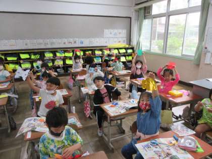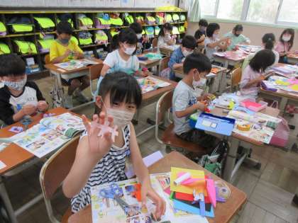 教室に入りたくなるようなちょきちょき飾りを作りました!