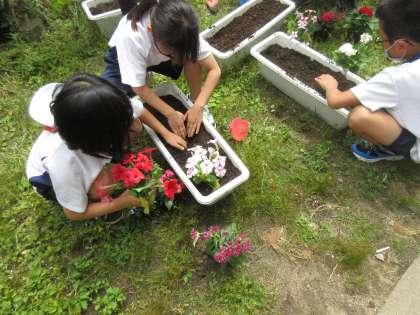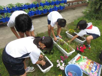 たくさんあるお花の中から,自分達が好きなお花を選び,植え替えました。