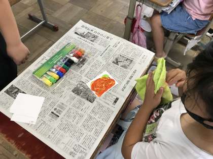 ずっと横方向に色を伸ばしていって混ぜる児童・・・
