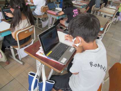 理科「こん虫の育ち方」の学習で,チョウの体のつくりをタブレットを使って調べました。どの角度からでもチョウをじっくり観察できる「ものすごい図鑑」で観察しました。