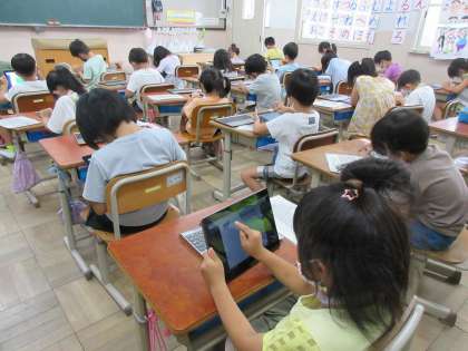 国語科の「好きなものはなあに」の学習でタブレットを活用しています。