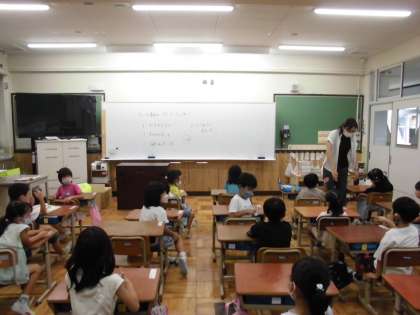 1年生は、友だちと夏休みの思い出を伝え合いました。