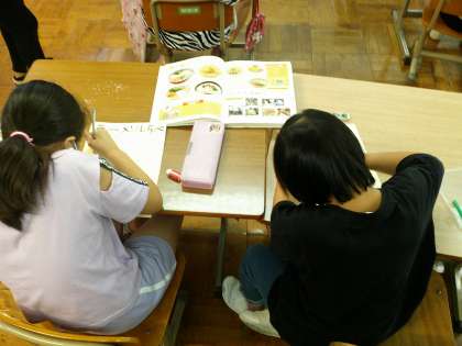 今日は,バス,服,食べ物等,調べることを本やタブレットで調べて表紙に絵を描きました。