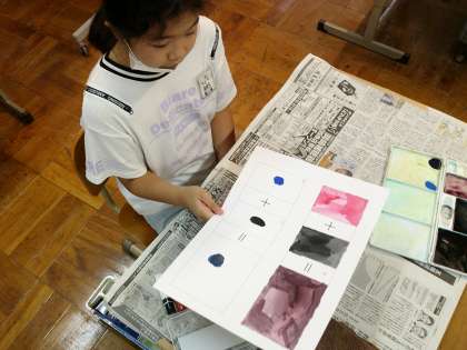 2色混ぜて色を作りましたが,何色ができるのかとても楽しみにしながら混ぜる姿が見られました。