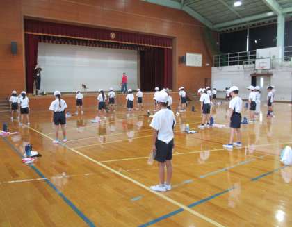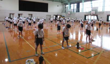 スポーツフェスティバルに向けて、3年生は「エイサー」に取り組んでいます。