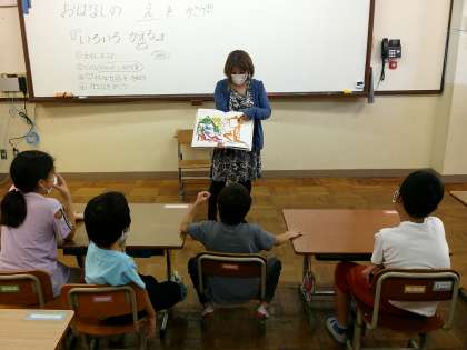 たくさんのカエルの絵が出てくるお話ですが,子どもたちはカエルの真似をして,歌ったり,はねたりしながら楽しんでいました。