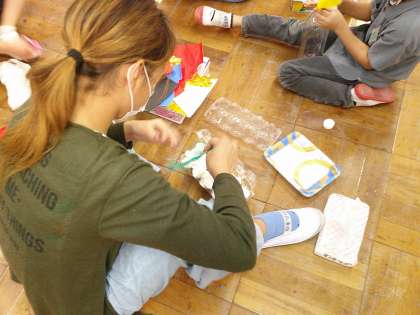 また,たまごのパックに茶色や緑の色画用紙をいれて,タコ焼きを作っている子もいました。