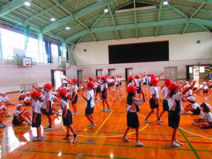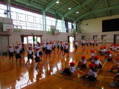 体育館では、ダンスのメリハリを意識して取り組み、成果をクラス毎に発表しました。