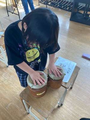 アゴゴー等,見慣れない楽器も鳴らして楽しみました。