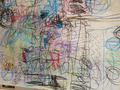 3枚目の絵は,1人の児童が大きな紙にクレパスで自由に描いた作品です。