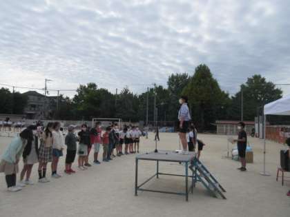 明日のスポーツフェスティバルに向けて5,6年生が前日準備を行いました。