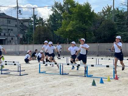 4年生は50メートルハードルにチャレンジします。