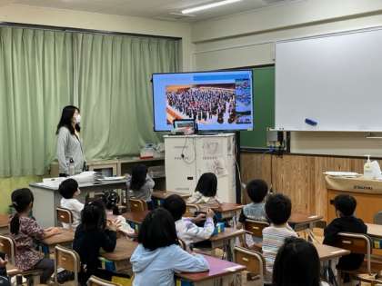 ザカリ—先生と担当の先生が作成したスライド、そしてお話を聞く中で日本とアメリカの小学校に似ているところや違いについて理解を深めることができました。