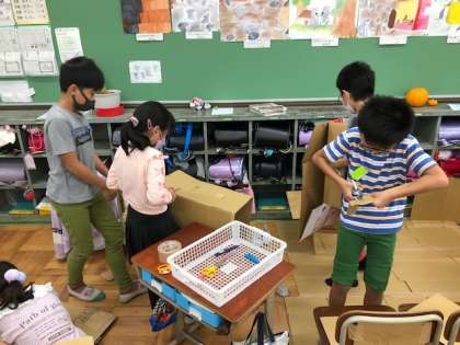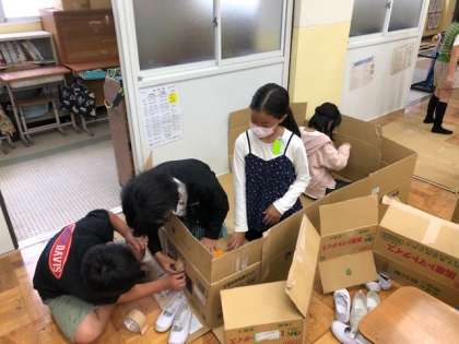 図画工作科の時間に段ボールを使って、居心地が良い場所を作りました。