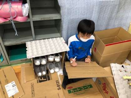 家の中にくつ箱を作っているグループや