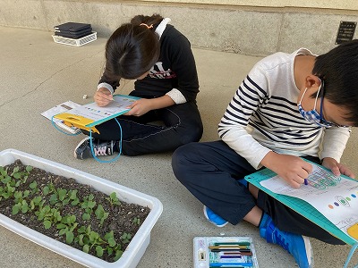 ラディッシュを育てているので,今日は観察をしました。
