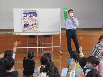 実際に劇をして頂いたこともあり,子どもたちも自分の命を守る術を再確認できました。