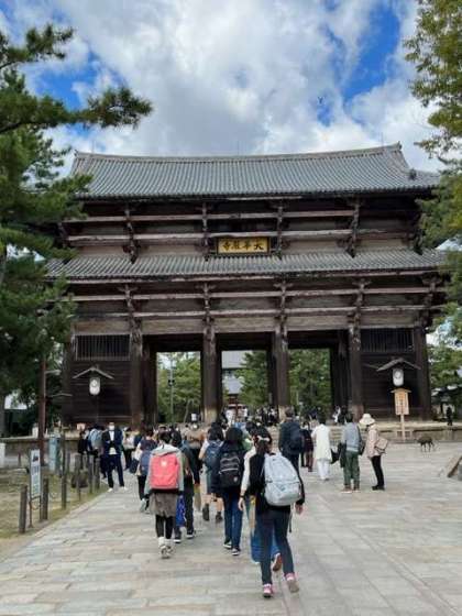 東大寺に到着しました。南大門、そして金剛力士像を見て大仏殿に向かいます。