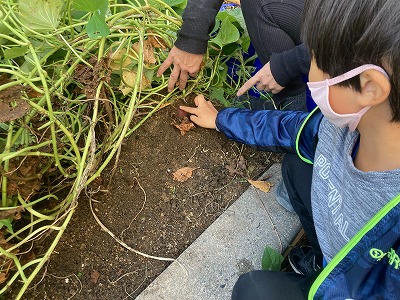大きなサツマイモが育っており,みんなでサツマイモにタッチしました。