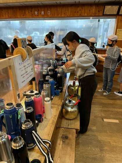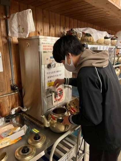 ボランティアの先生も子どもたちのご飯を食べている合間にお茶入れを頑張っています!